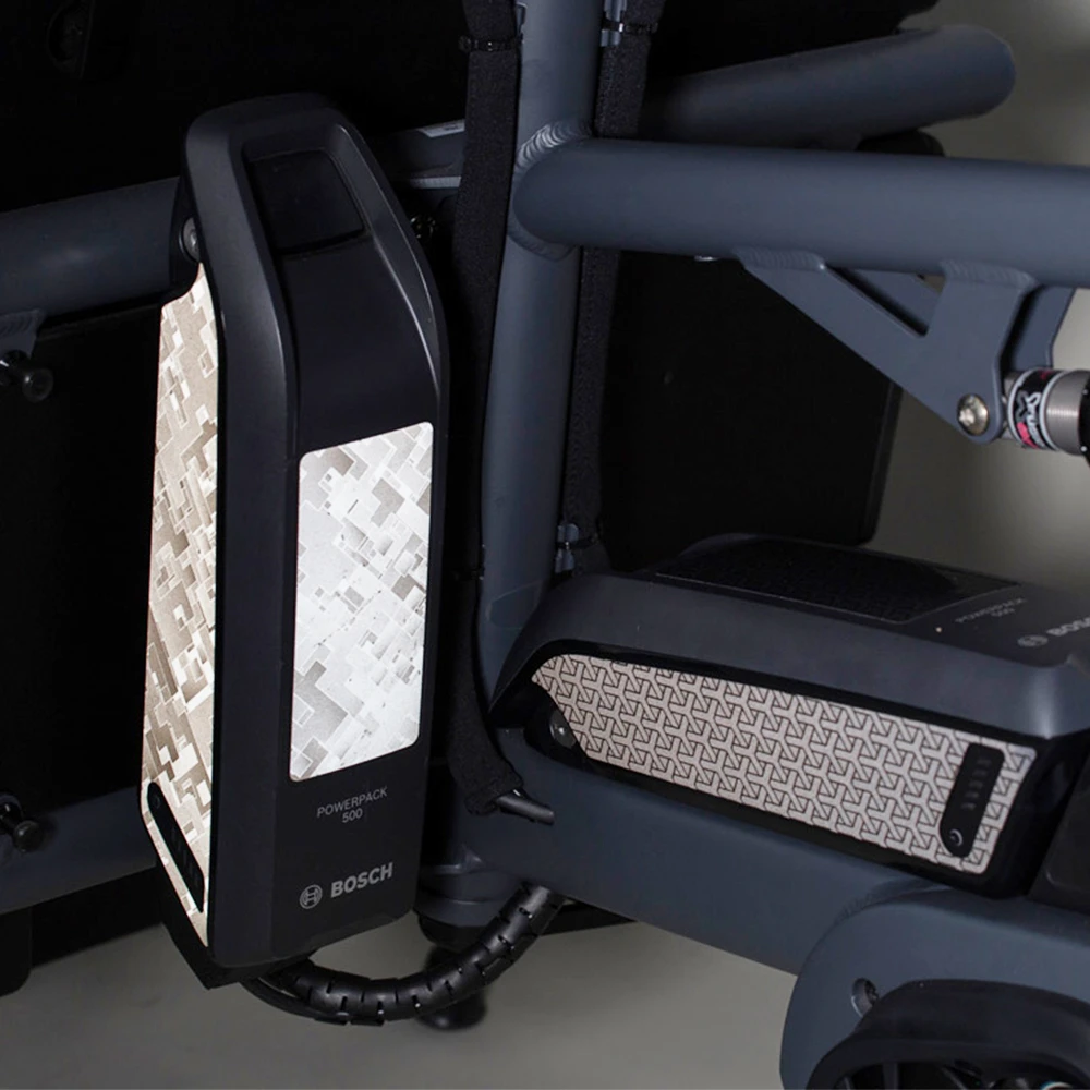 Das Reflective Battery Kit von FAHRER beinhaltet 7 Reflektoren in der Form von Aufklebern. Diese sind mit dem Bosch PowerPack Rahmenakku kompatibel. Wenn die Reflektoren angestrahlt werden, ist Ihr E-Bike im Dunklen gut zu erkennen. So sorgen die reflektierenden Aufkleber für mehr Sicherheit.
