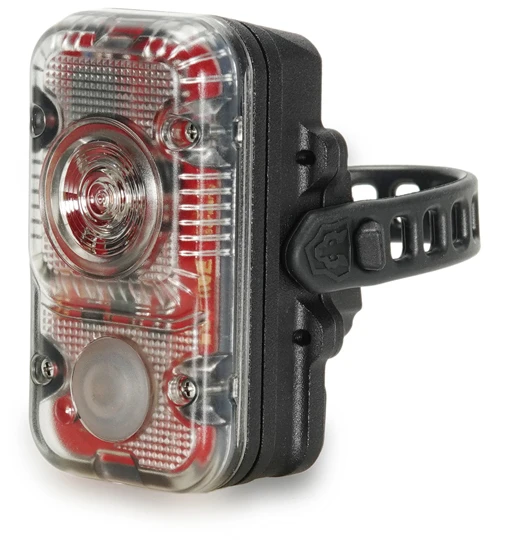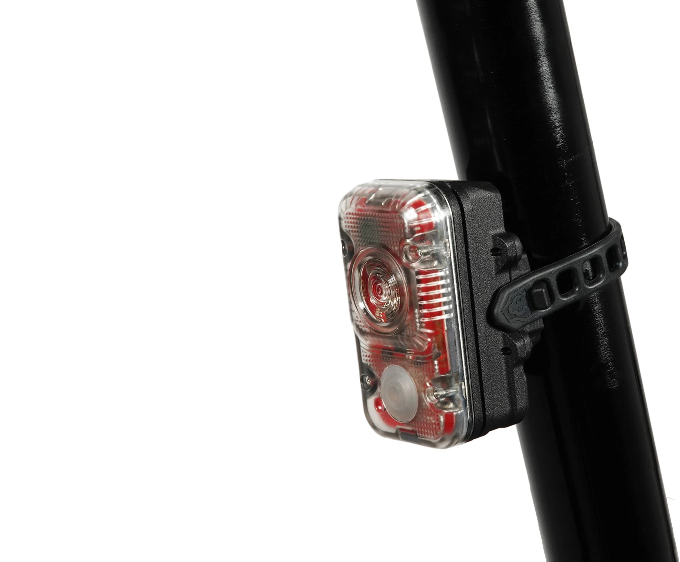 Das Sensorgesteuerte Licht überzeugt nicht nur mit seiner enormen Leuchtkraft von 40 Lumen sondern besitzt auch noch einen Bremssensor. Bei einem Bremsvorgang reagiert das Rotlicht Max sofort und die Helligkeit des Rücklichts wird erhöht, so wird dem Hintermann signalisiert das Sie langsamer werden. Das Gehäuse ist aus einem CNC gefrästen eloxiertem Aluminium, wobei der Frontdeckel aus Polycarbonat (PC) ist. Dank dieser Kombination ist dieses Rücklicht wasserdicht und stoßfest.