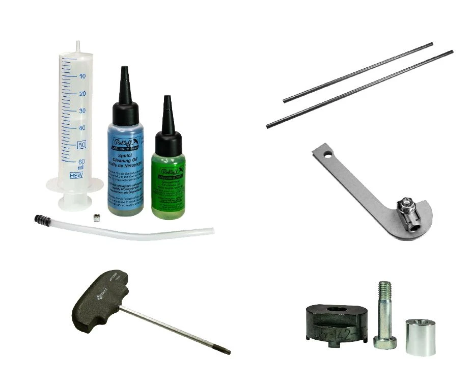 Rohloff Werkzeug Set um alle nötigen Wartungsarbeiten sowie verschiedene Reparaturen an der Speedhub 500/14 selbst durchführen zu können.